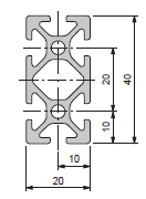 Aluminiumprofil 20x40. T-Spår 5. Centrumhål för M5 skruv