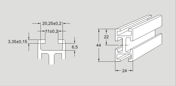 ALUMINIUMPROFIL 44 X 24. T-SPÅR 11