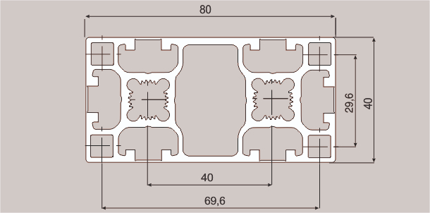 Aluminiumprofil 40x80, Basic. S. T-Spår 8
