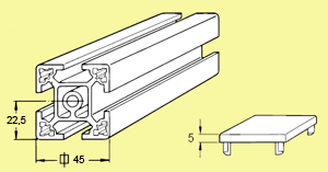 Aluminiumprofil 45 x 45. Tung. T-spår 11. Hörnhål för M6 Skruv