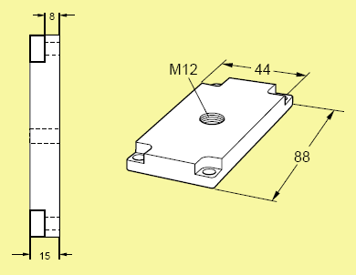 Funktion: För att få ett M12 centrumhål i aluminiumprofil 44x88; 001-017 och 001-018.