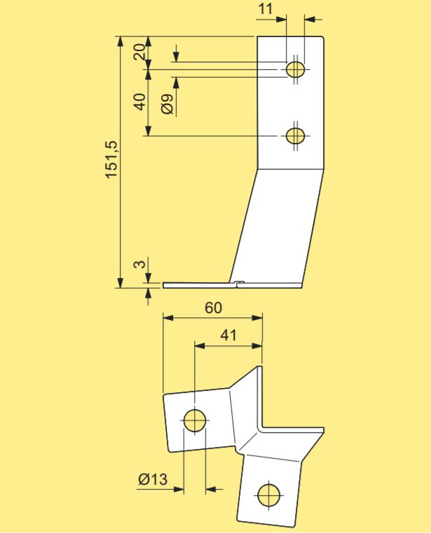 Längd: 152 mm Bredd: 60 mm Tjocklek: 3 mm