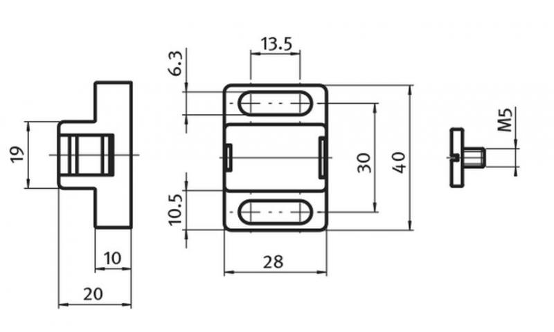 Magnetlås, T-spår 8.