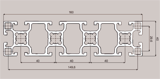 Aluminiumprofil 40x160, Basic. T-Spår 8. Centrumhål för M12 skruv