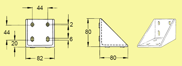 Vinkelfäste 82x80x80. M8. T-spår 11. 1st.